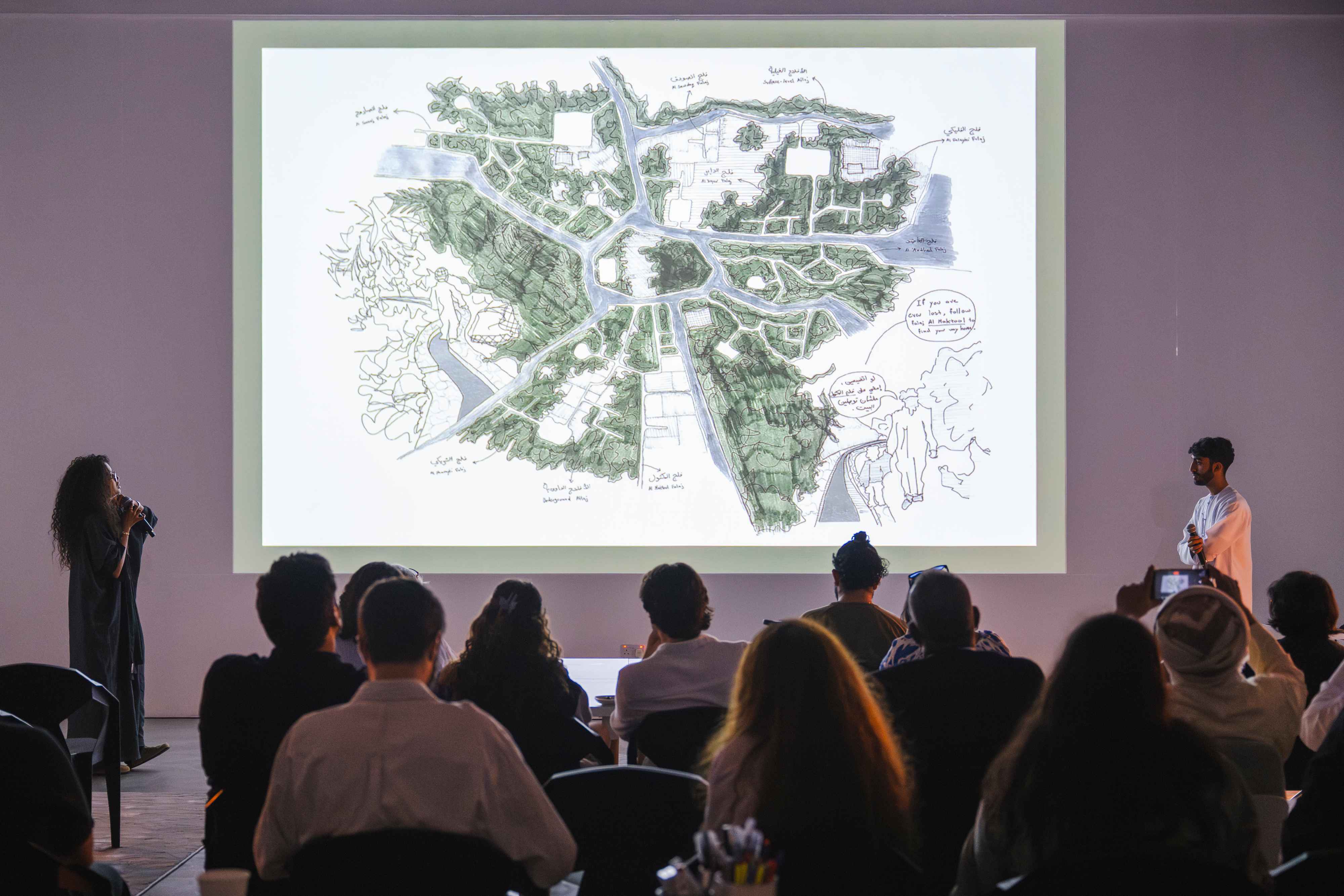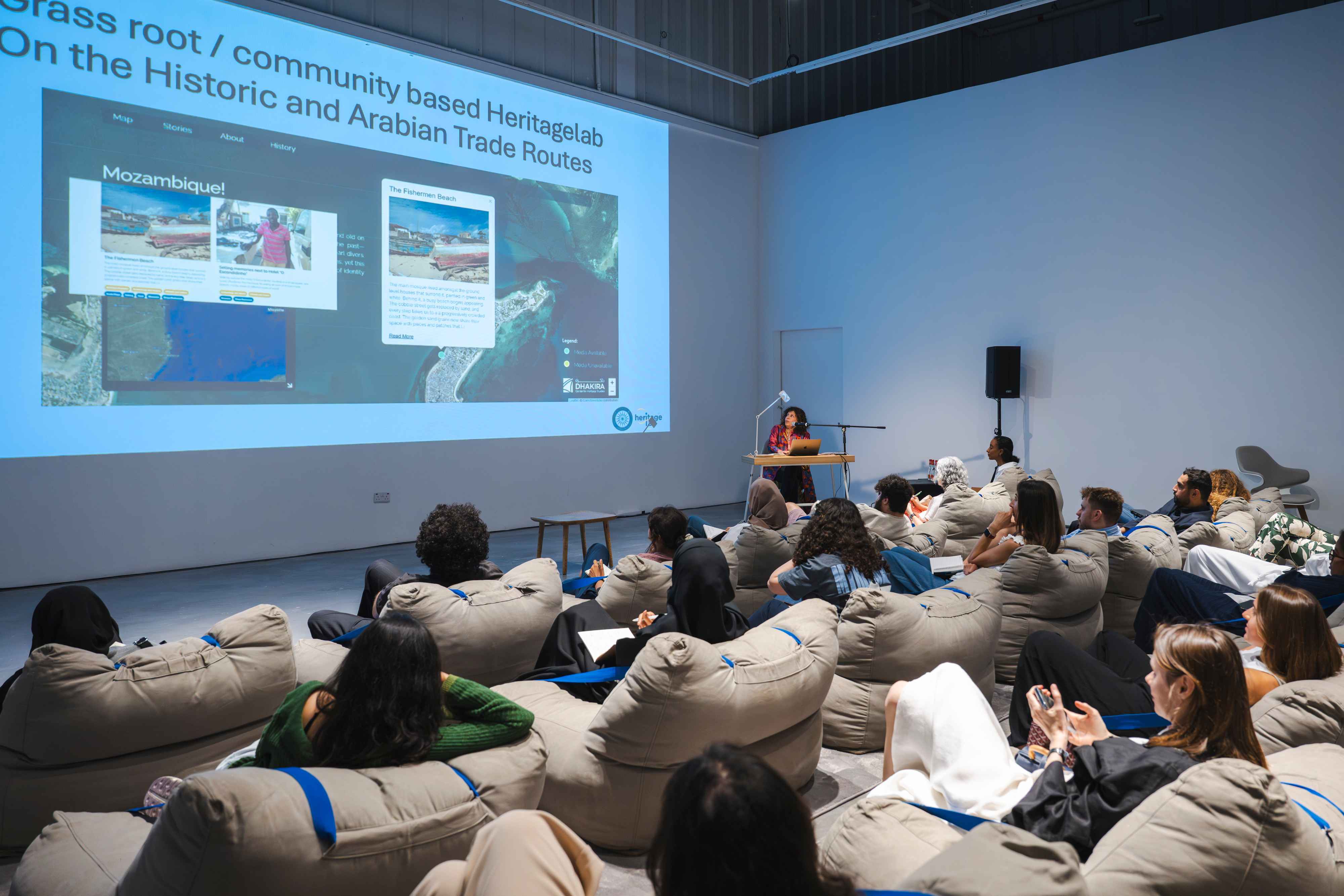 Artist Moza Almazrouei, and writer and filmmaker Alia Yunis, explored the complexities of heritage spaces, examining their environmental conditions and the challenges they face. This session investigated how these spaces both influence and are shaped by their geopolitical landscapes, as well as the methodologies used to map them.