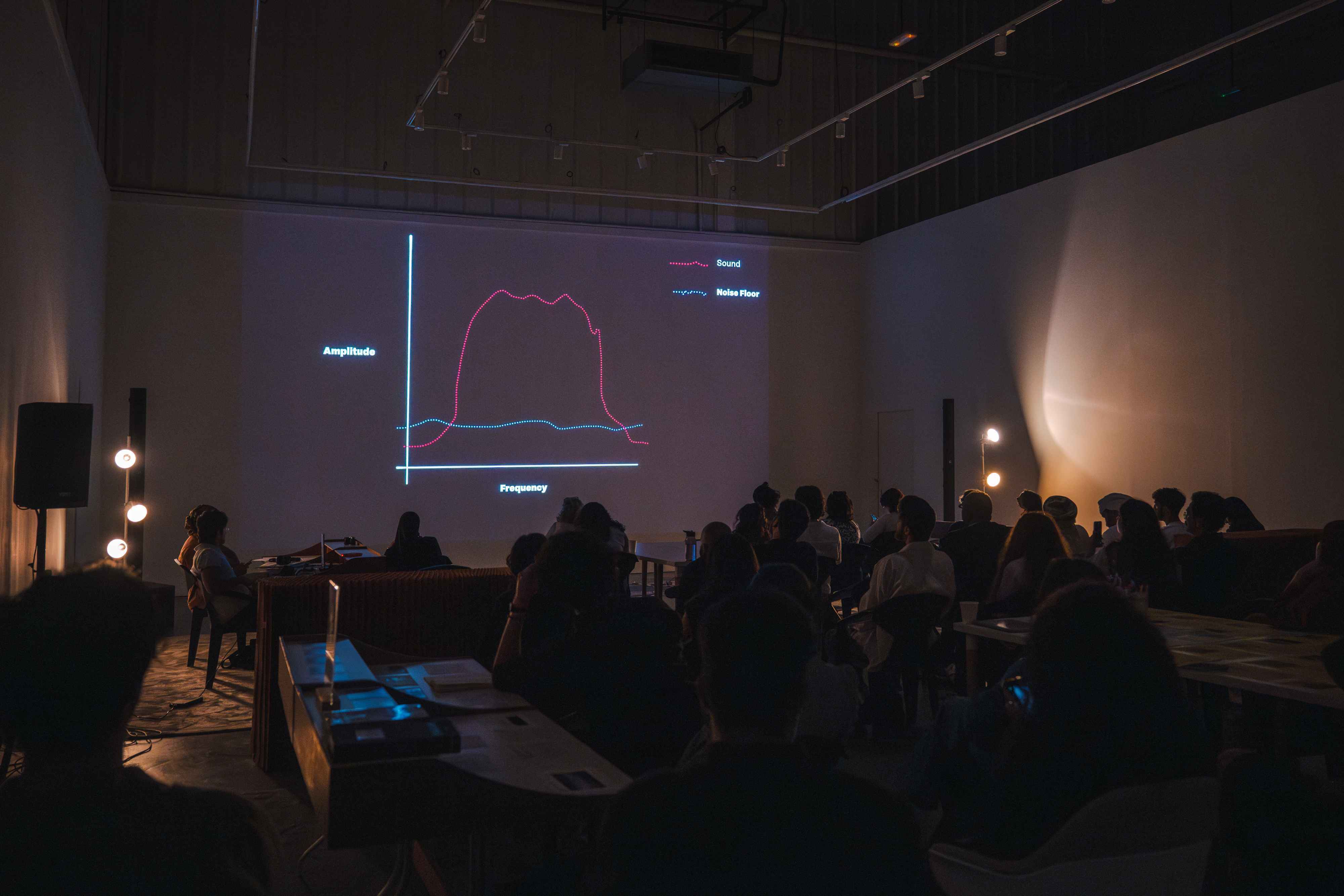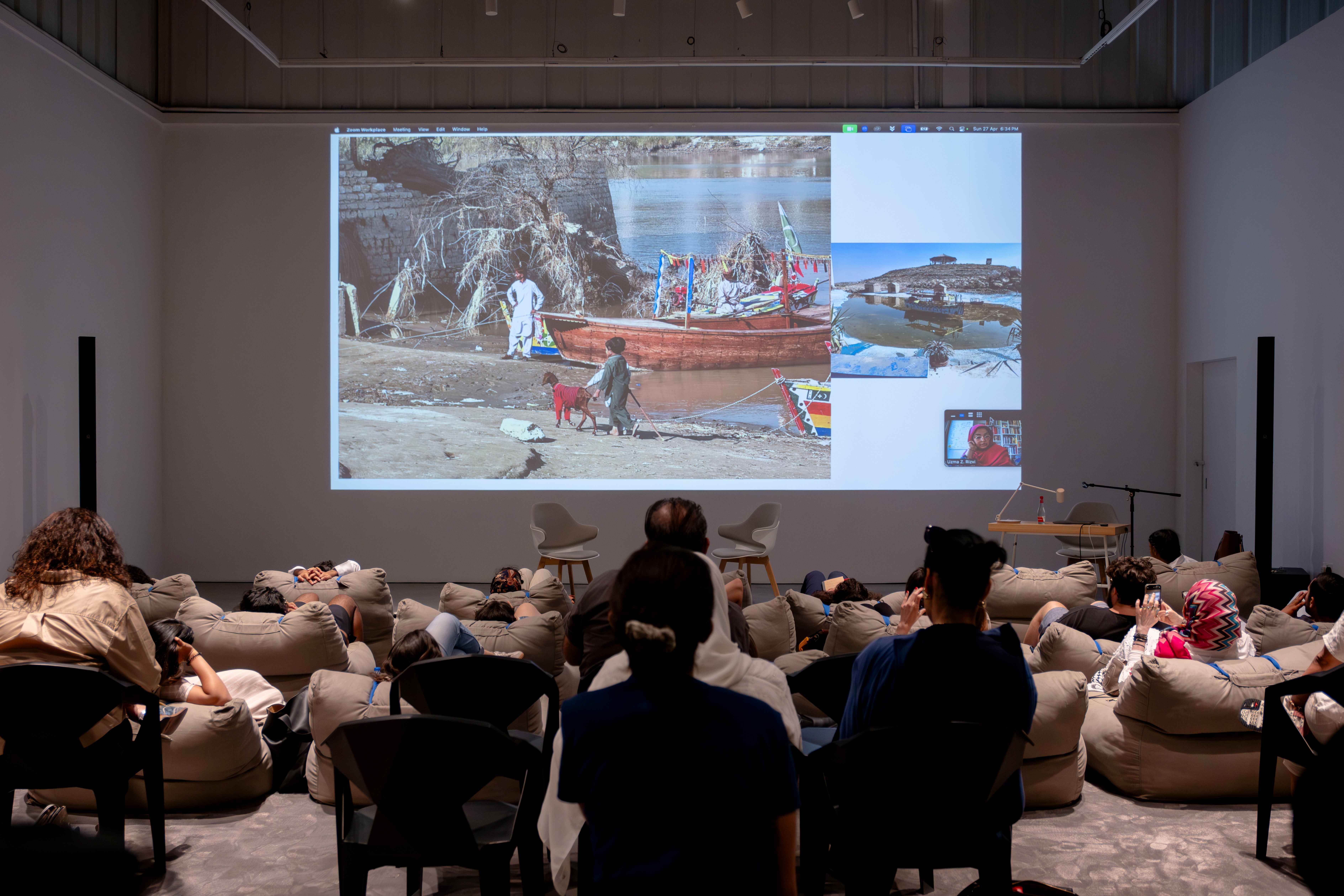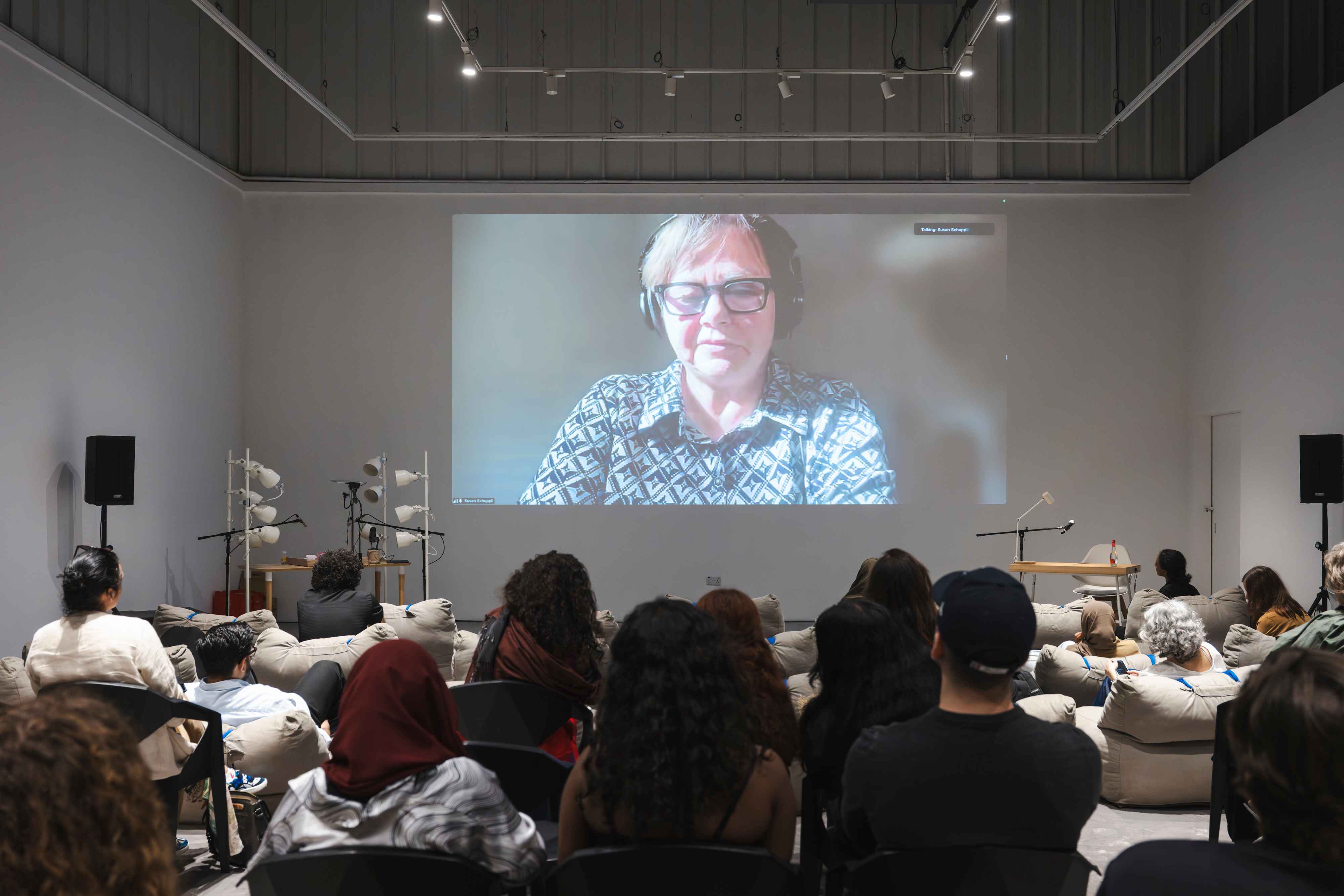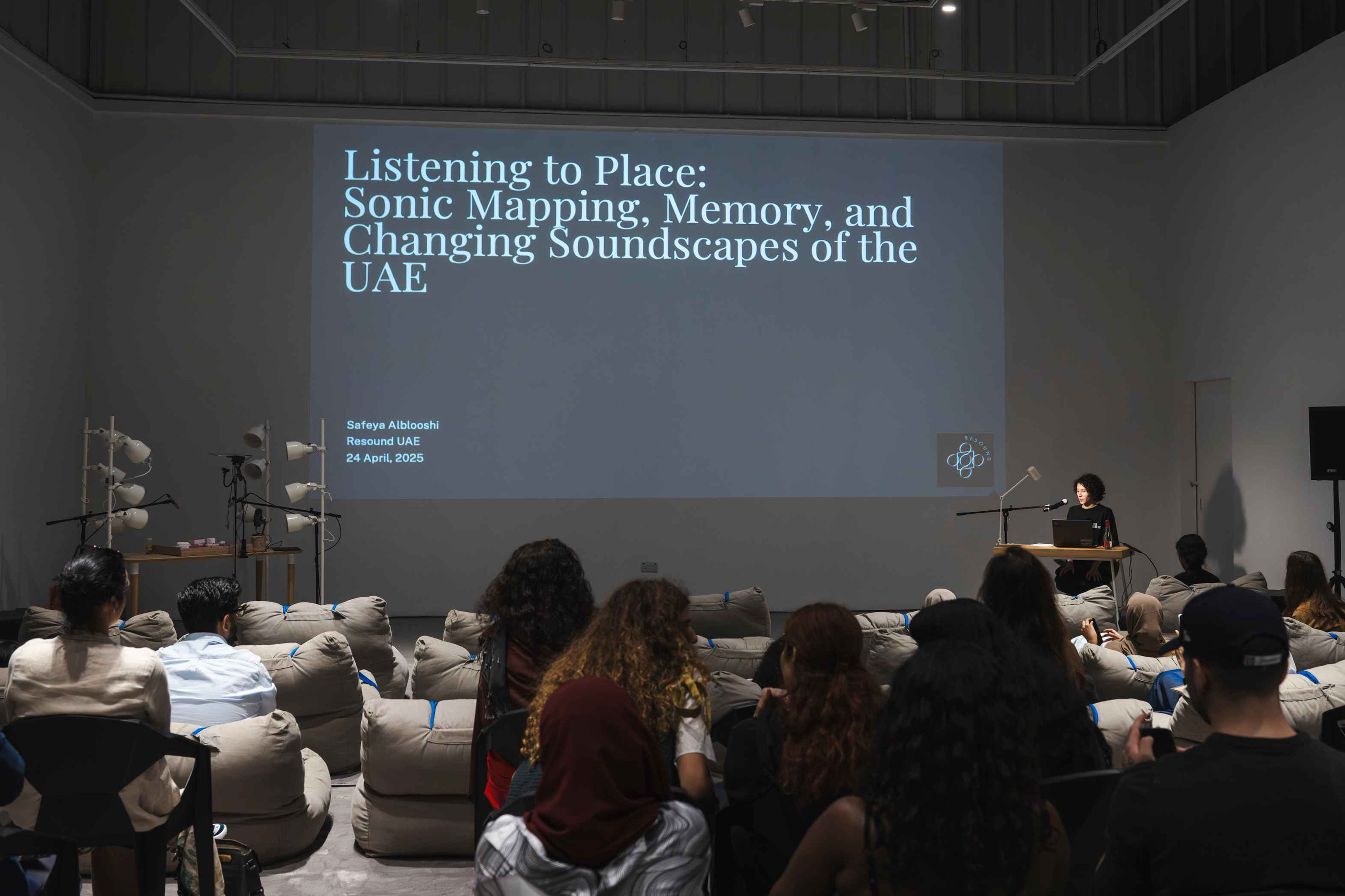 Together with artist Safeya Alblooshi, writer and curator Shumon Basar, and scholars Susan Schuppli and John Thabiti Willis, we explored the significance of sound as a medium for perceiving and experiencing our surroundings in new ways. The session also guided us in identifying the tools needed to detect the embedded histories within specific soundscapes, offering insight into how environmental histories can be unearthed through sound. We concluded with a live performance by ASMR artist Rusha Omran, who activated a range of tactile and auditory triggers — crushed materials, soft whispers, and rhythmic patterns — to evoke a sense of calm.