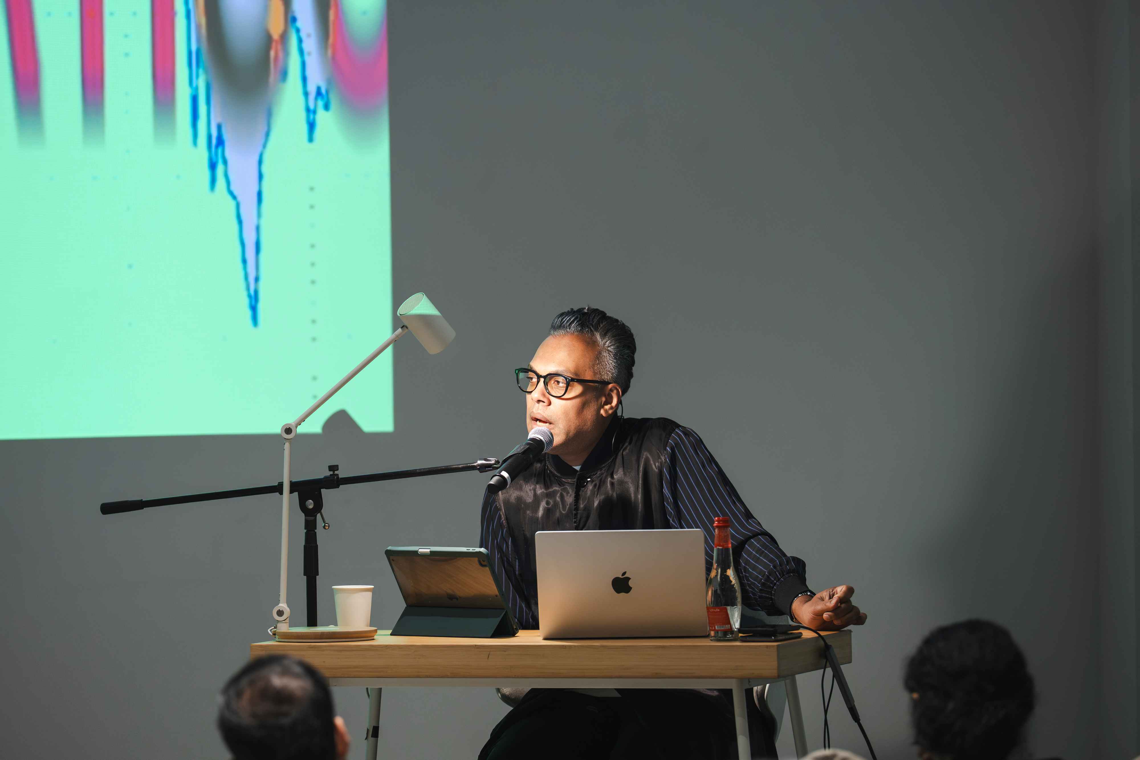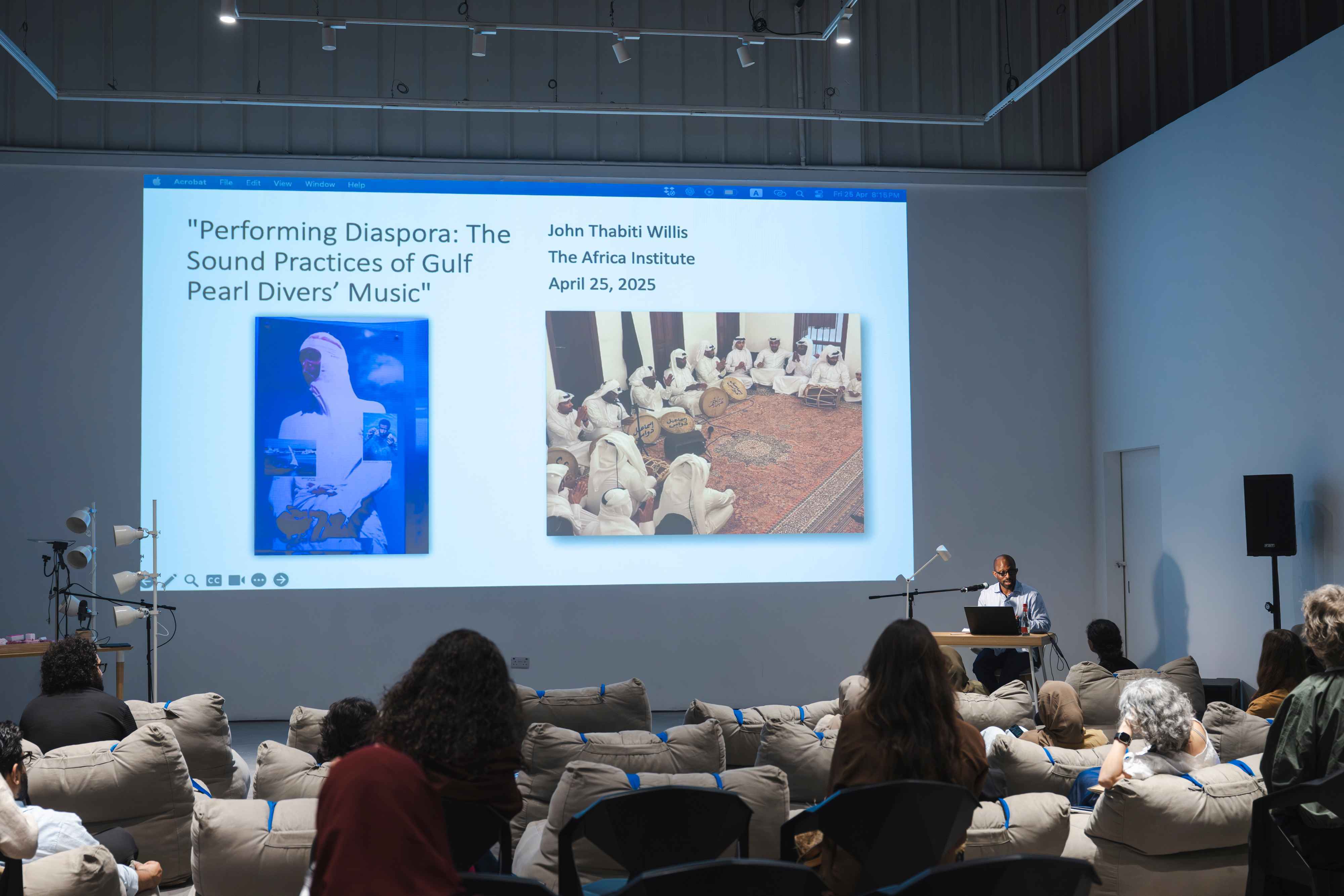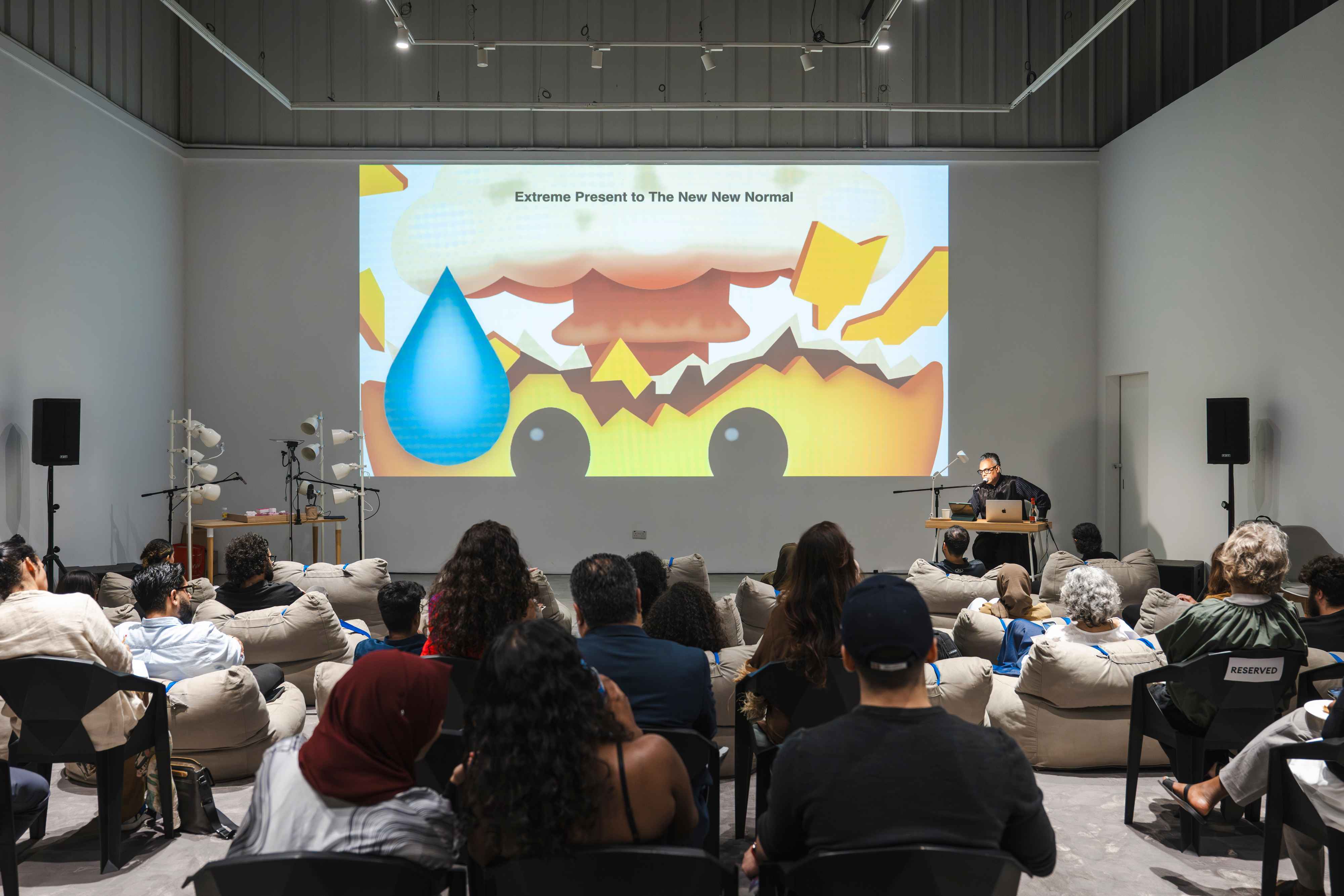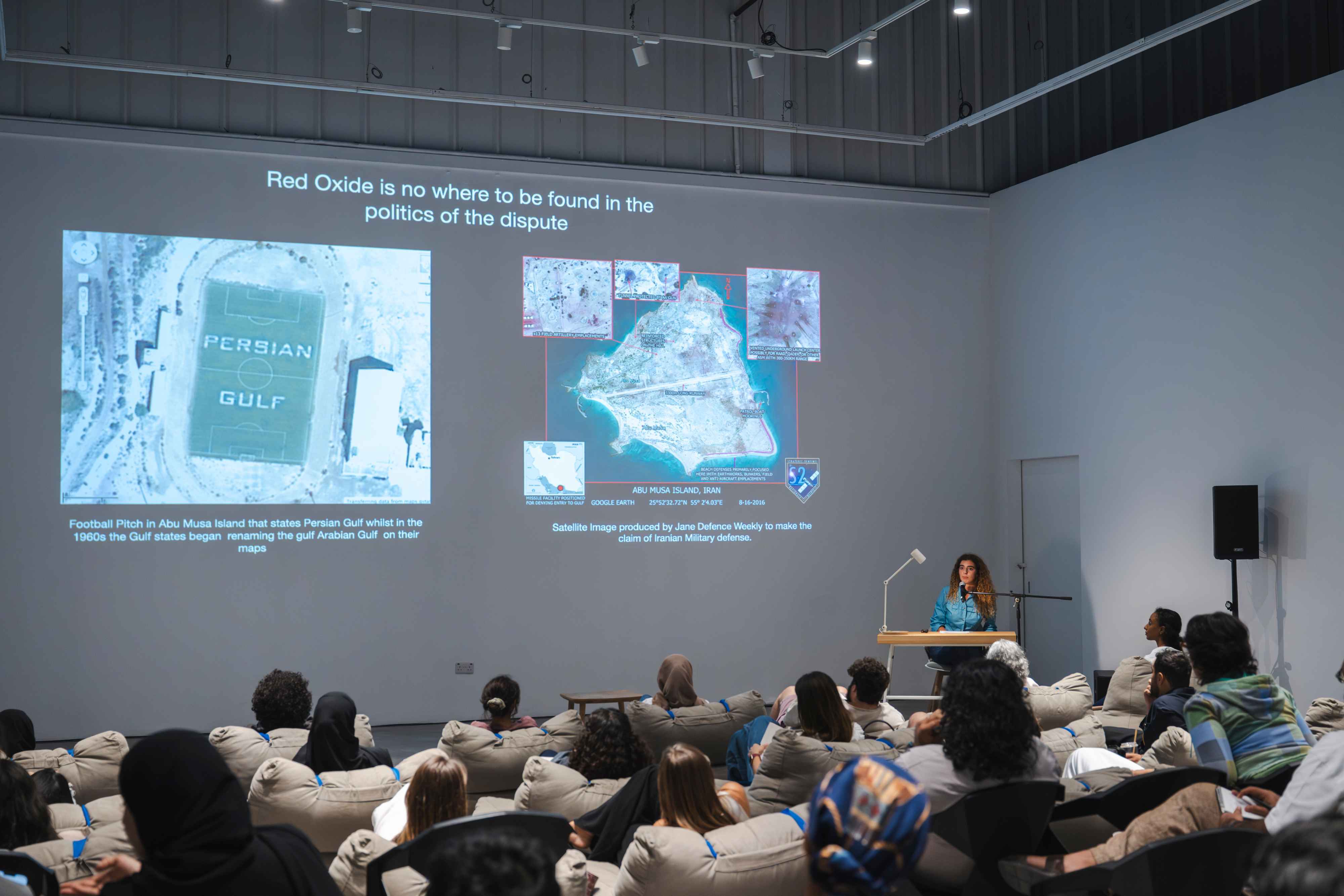 Together with artist Safeya Alblooshi, writer and curator Shumon Basar, and scholars Susan Schuppli and John Thabiti Willis, we explored the significance of sound as a medium for perceiving and experiencing our surroundings in new ways. The session also guided us in identifying the tools needed to detect the embedded histories within specific soundscapes, offering insight into how environmental histories can be unearthed through sound. We concluded with a live performance by ASMR artist Rusha Omran, who activated a range of tactile and auditory triggers — crushed materials, soft whispers, and rhythmic patterns — to evoke a sense of calm.