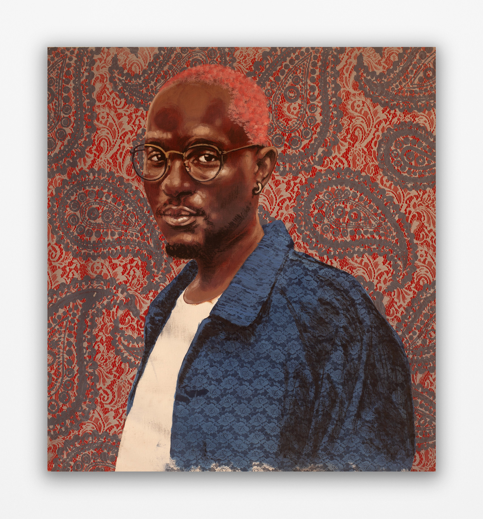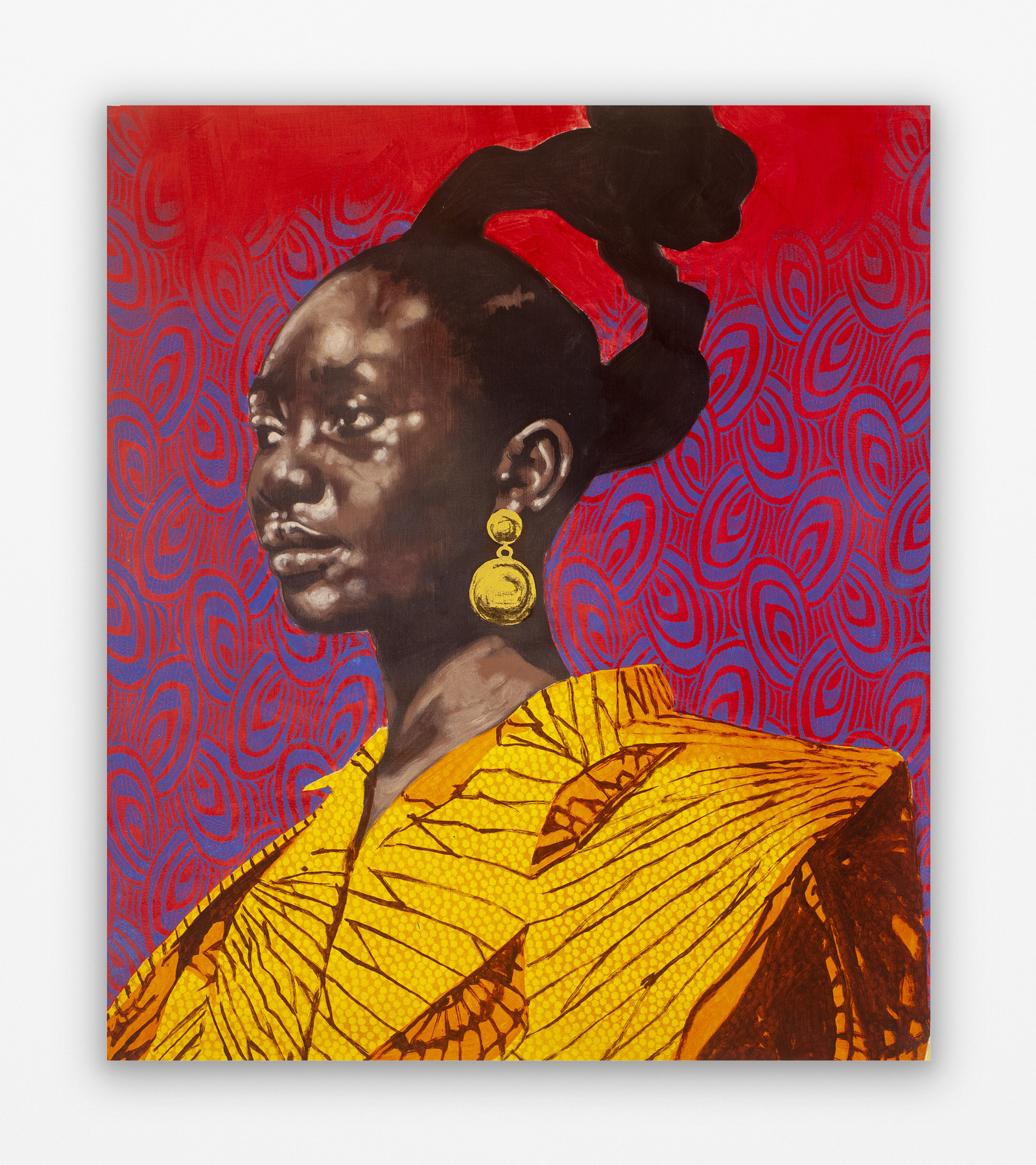 traditional printmaking techniques, local wallpapers and African textiles. Portrayed on intricate and