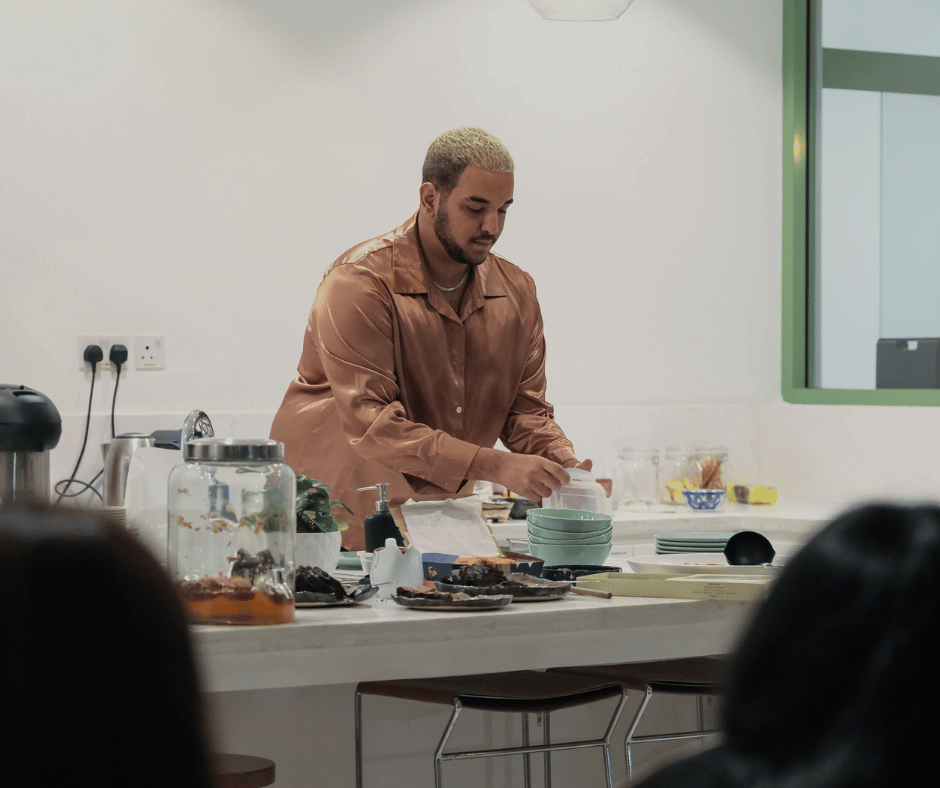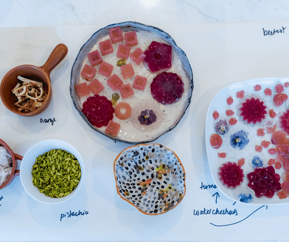 A demonstrational workshop that deconstructed the process of making Tub Kim Krop, a traditional Thai dessert integral to Chef Priyal’s childhood spent in Bangkok. Using natural dyes, casting and layering, Chef Priyal assembled this traditional dessert, showed how to make ice cream and infuse pandan milk. Participants then pondered over how our favourite childhood desserts can continue to carry relevance.