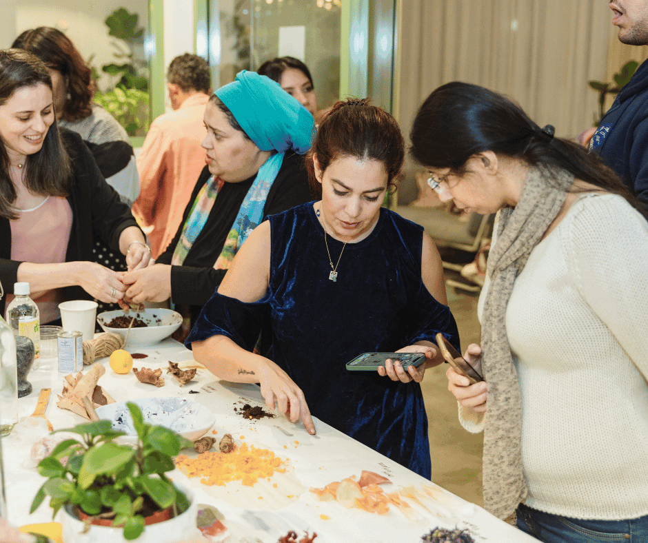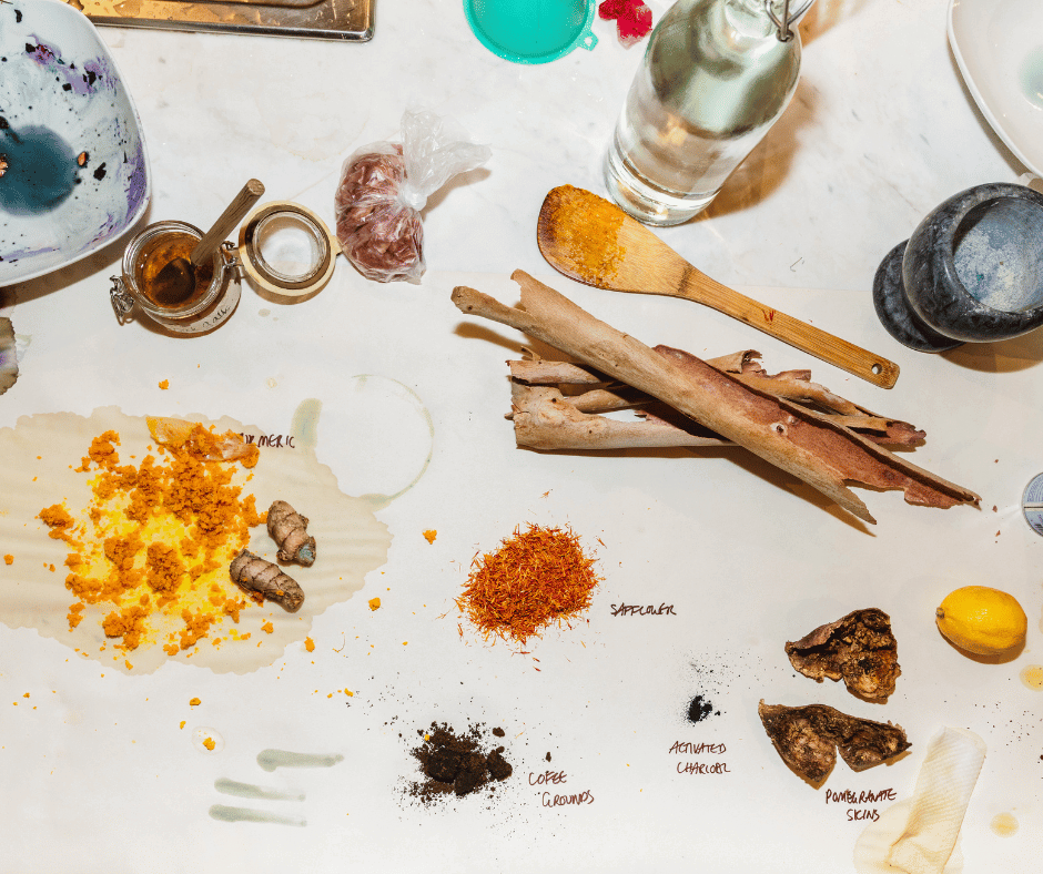 A demonstrational workshop that explores the different ways food can be disguised and painted through alchemy and natural dyeing. Using herbs, flowers and common pantry ingredients ubiquitous to the spice souk and supermarkets, the participants learnt how to further their knowledge of colour extraction, not to just be used on food, but to create inks and dyes for textiles in preparation for the dinner.
