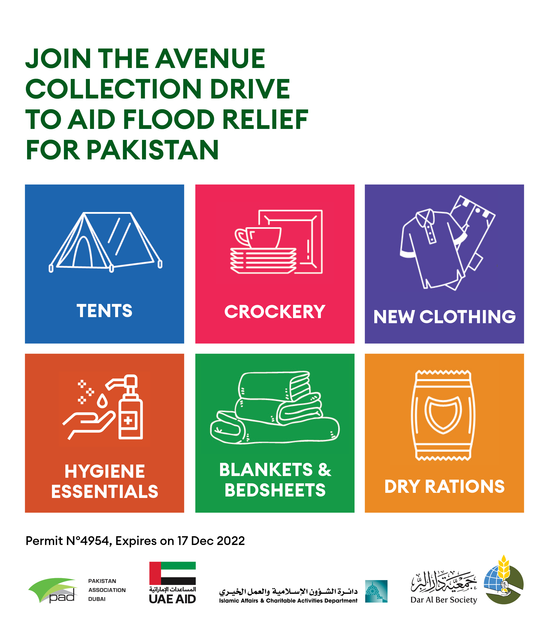 All items gathered and collected will be dispatched to the Pakistan Association of Dubai (PAD) to support the people of Pakistan affected by the severe floods.