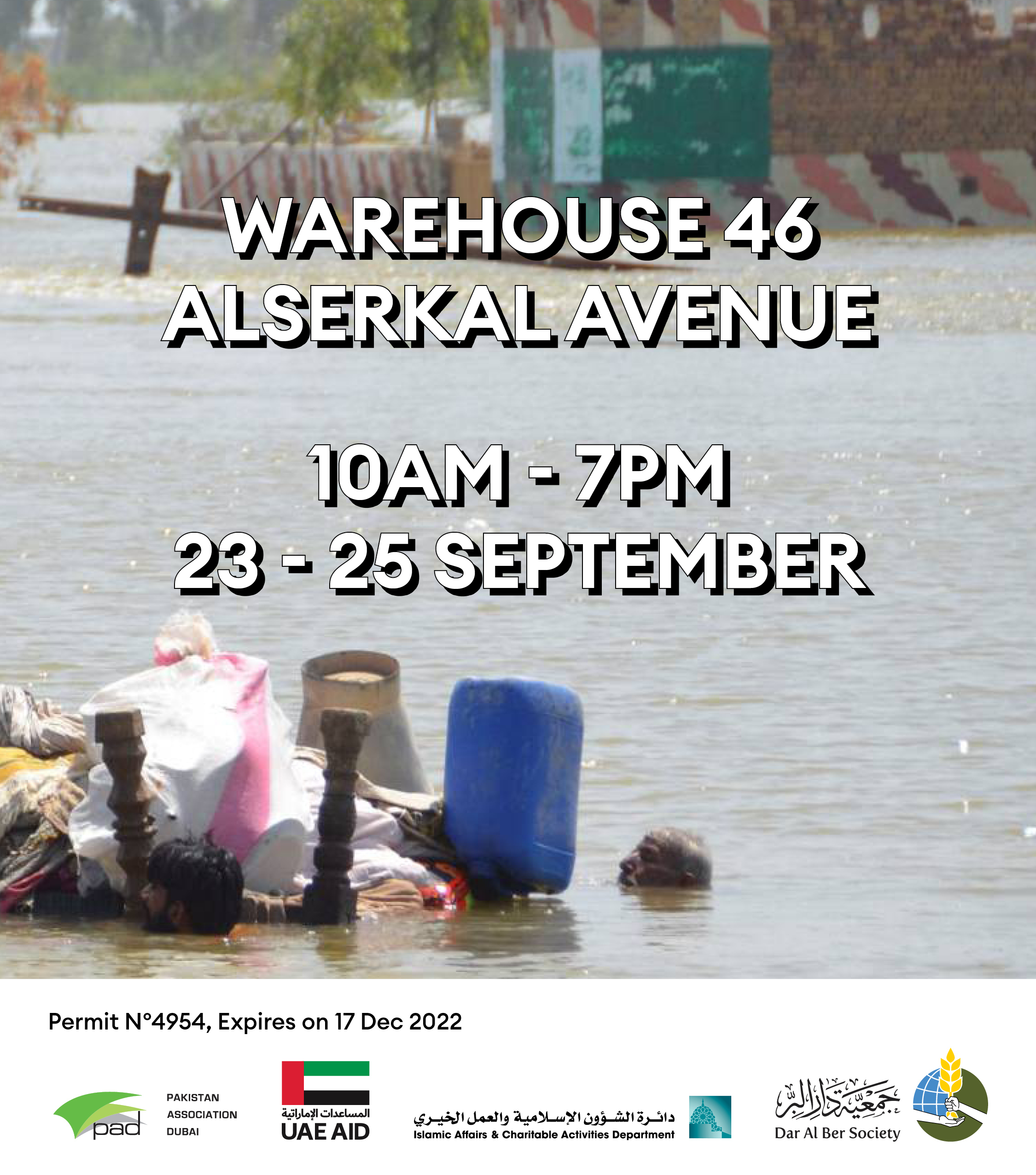 Cash Donation: A donation box will be located at Warehouse 46 - you can also make cash donations by visiting the website of PAD (www.pad.ae), which works directly with the charity organisation Dar Al Ber Society.