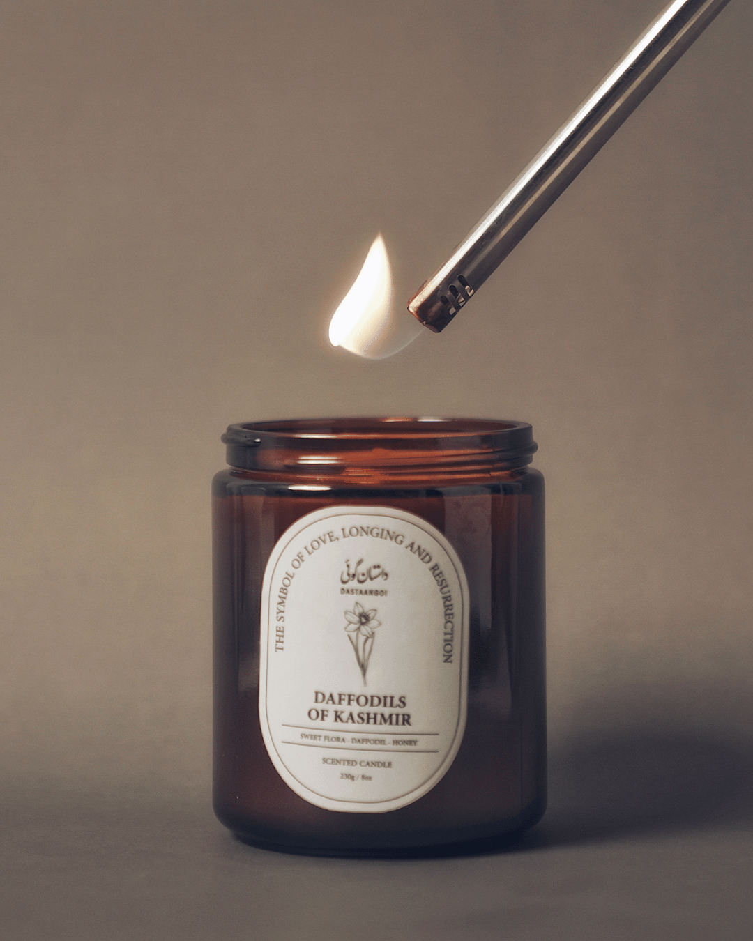 Dastaangoi is a creative home in Islamabad where stories from the Global South come to life. Through our art residencies and gallery, they bring together artists from Pakistan, Dubai, and beyond to celebrate cultural connection. Their handcrafted candles — inspired by scents like Pomegranates of Kandahar, Monsoons of Mumbai, Wild Figs of Bursa, and many others — capture the essence of place, memory, and belonging, and through their fragrances, we share stories from across the world in every flame."