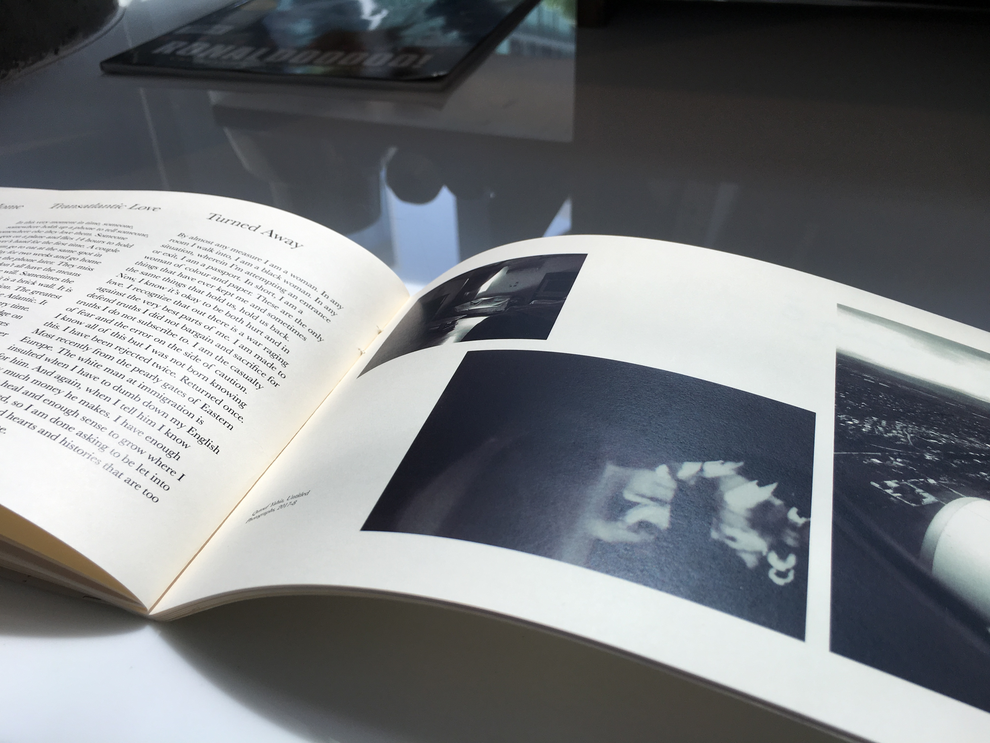 The curatorial premise ofGuftgu included inventive means to reduce production costs. The cover was a box made from packaging material, printing was done digitally on standard paper, and the design was done by a friend at a reduced fee. The result was something that did not feel precious. The second print edition of the book employed offset printing, screen-printing, and debossing, but since the design was repurposed and the book printed on unbranded paper, the cost of production remained low.