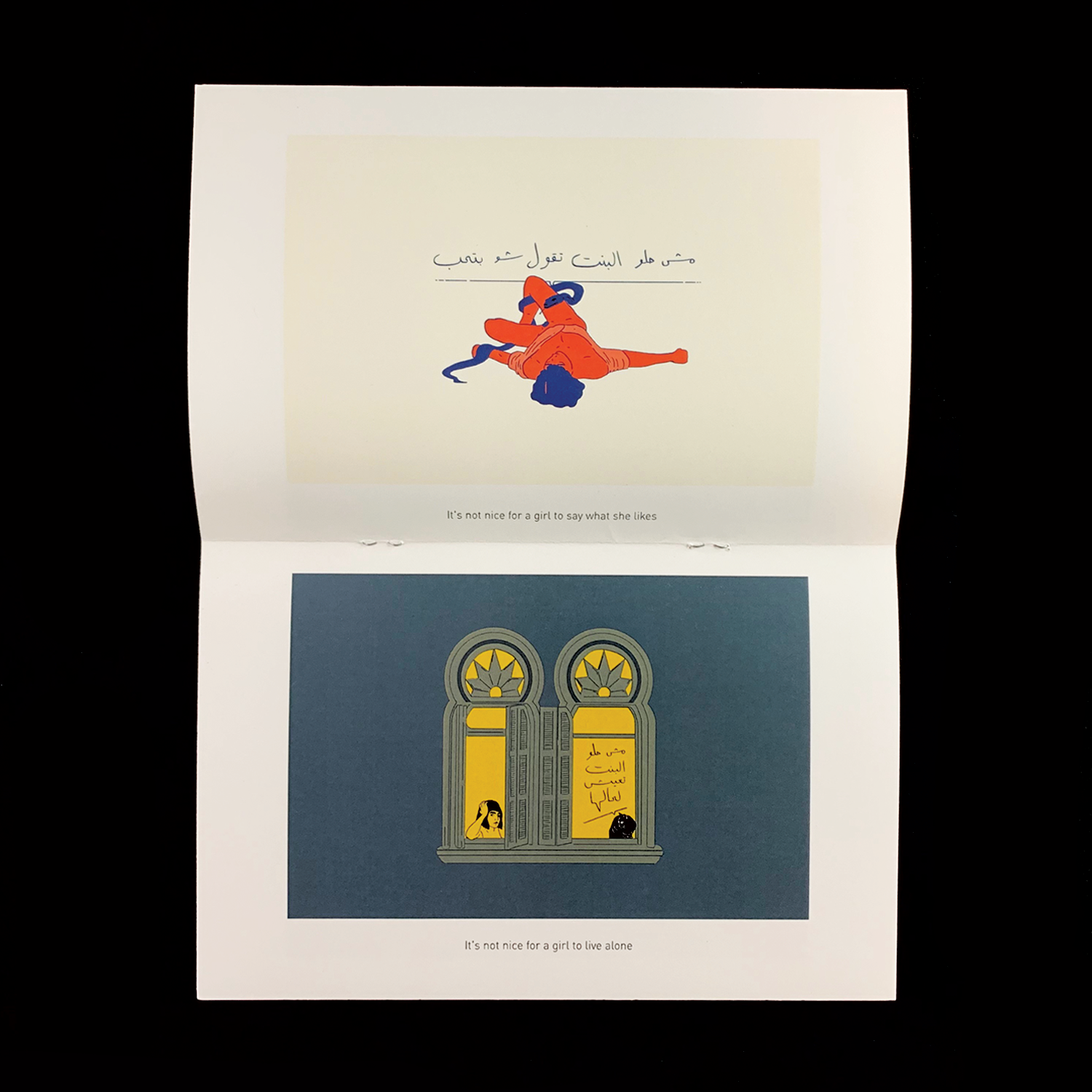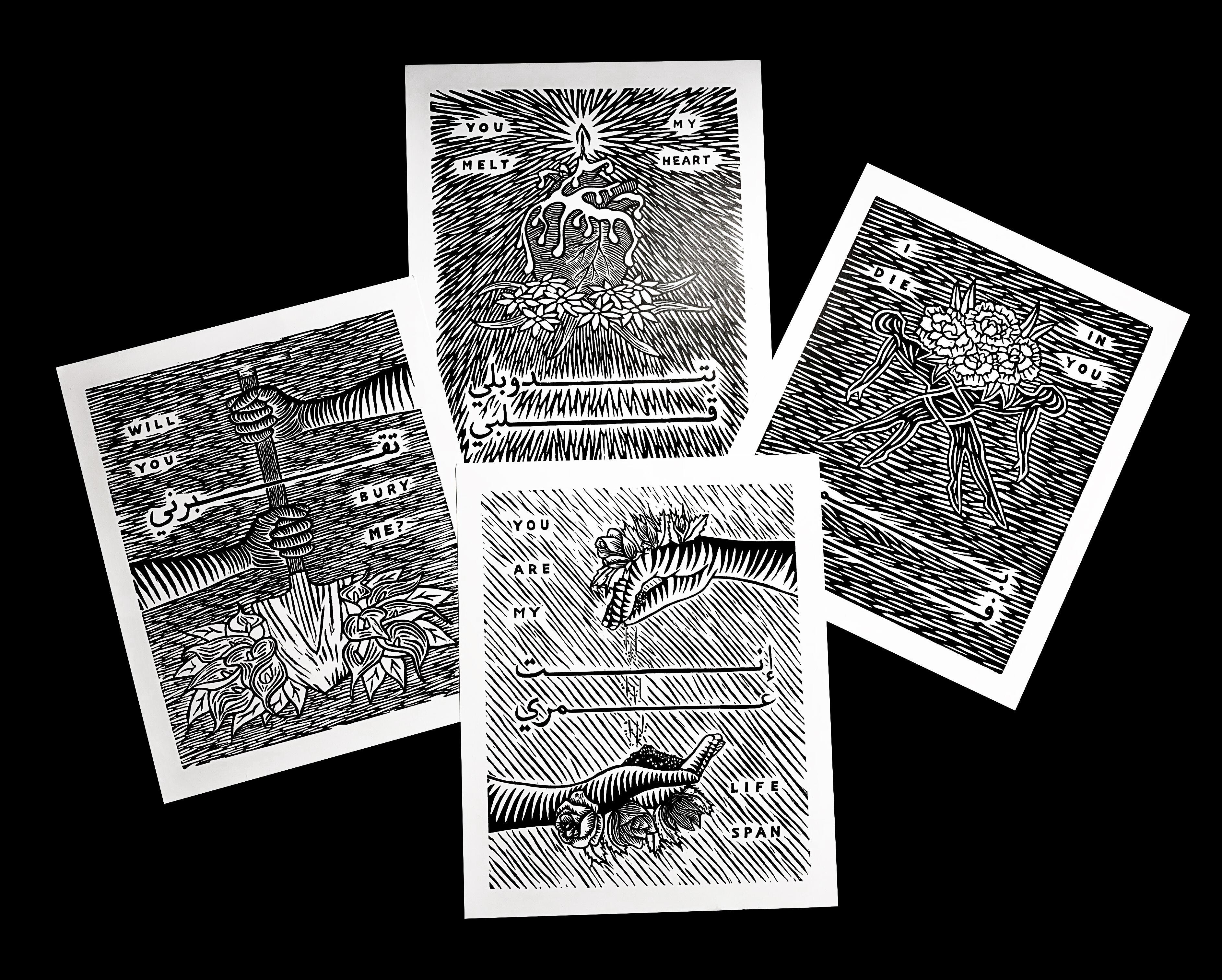 Founded by Leila Abdelrazzaq and Krisht in 2019, Maamoul is a small press that prints and binds most of its publications in-house. The duo are interested in bookmaking and printmaking practices and look towards the DIY culture as an alternative for conventional structures of art pedagogy, practice and knowledge-building – a system especially inaccessible to minority communities. Considering that the print run is several hundred for each title, this is a lot to do between the two. I ask where they store their wares – books, zines, posters – and Krisht tells me that there is no office and the stock is divided between their homes!