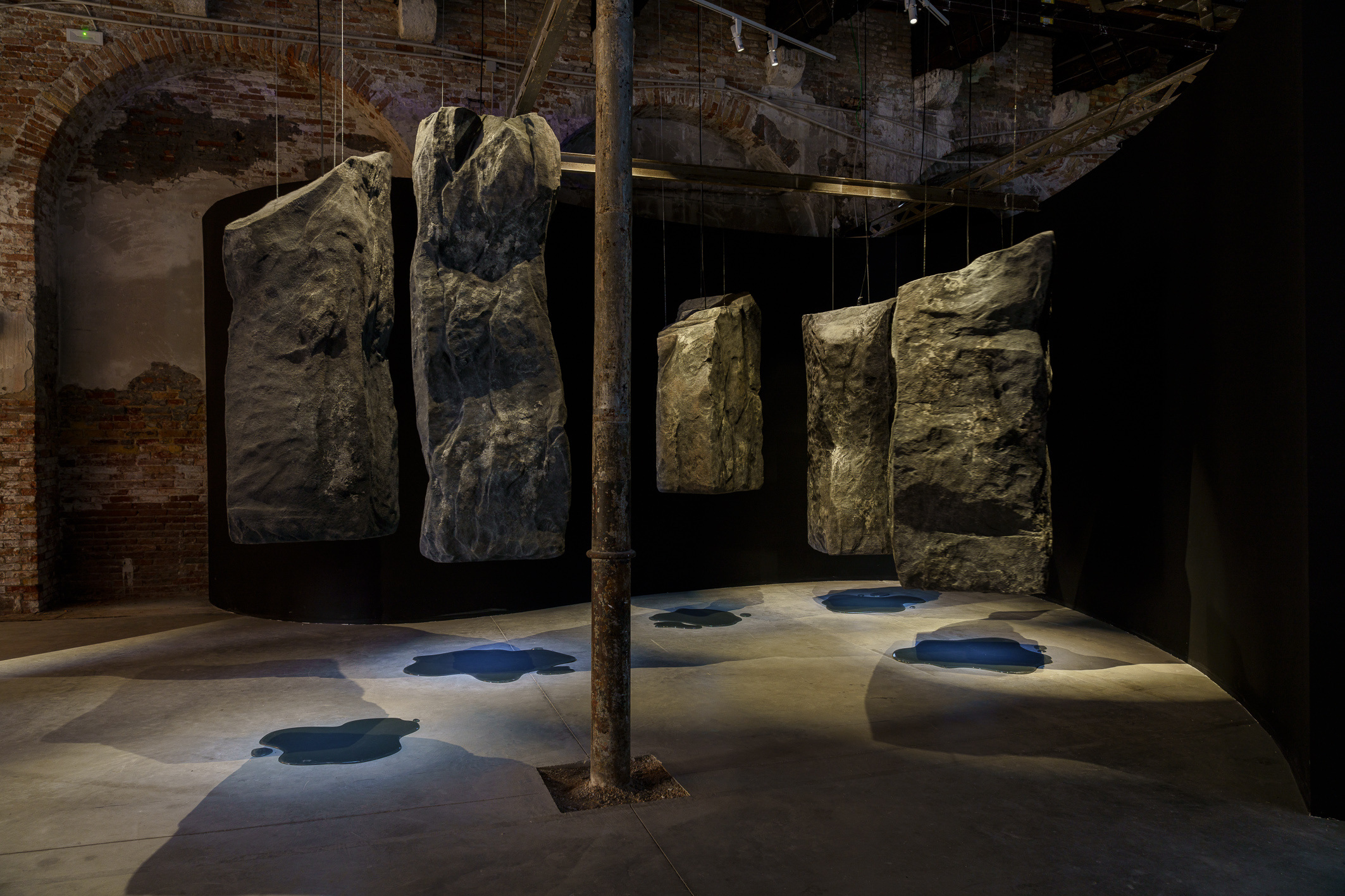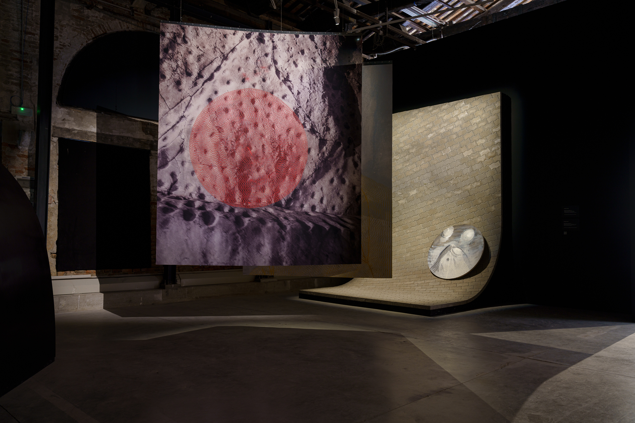 The Oman pavilion, a first for the Sultanate at the biennale, was powerful in offering a rich context for the evolution of its art scene. Curated by art historian Aisha Stoby, whose research has focused on modern art movements in the GCC, ‘Destined Imaginaries’ brought together the works of three generations of Omani contemporary artists, namely Anwar Sonya, Hassan Meer, Budoor Al Riyami, Radhika Khimji, and the late artist Raiya Al Rawahi. There was topographical materiality to the work that situates Oman, its craggy mountains and cave systems, while casting a lens on important issues such as environmental adaptation or nature’s way of dealing with climate change. Al Riyami’s sleek resin sculptures emulated how the peridotite rocks of Oman’s Hajar mountain range capture and store carbon dioxide in a natural process of decarbonisation, with significant implications for global warming. Al Khimji’s work referenced the fish that have both lost their pigmentation and vision as a result of adapting to the darkness of the Al Hoota caves. Juxtaposed with Meer’s contemporary video work on urbanity and Al Rawahi’s collaboration with Sonya on robotics and the future, this felt like a multi-faceted and relevant pavilion.